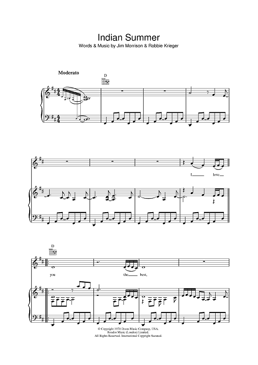 Digital Sheet Music for Indian Summer by The Doors, Jim Morrison, Robbie Krieger scored for Piano/Vocal/Chords; id:390740