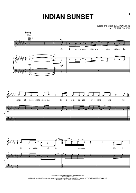 Digital Sheet Music for Indian Sunset by Elton John, Bernie Taupin scored for Piano/Vocal/Chords; id:392567