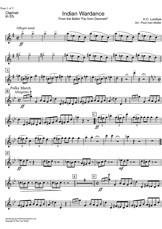 Digital Sheet Music for Indian Wardance from Far from Denmark - E-flat Clarinet by Hans Lumbye, Poul Ivan Moller scored for Concert Band; id:328378
