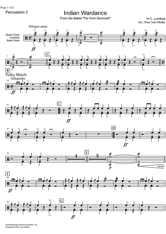 Digital Sheet Music for Indian Wardance from Far from Denmark - Percussion 2 by Hans Lumbye, Poul Ivan Moller scored for Concert Band; id:328376