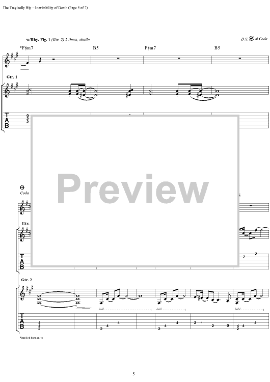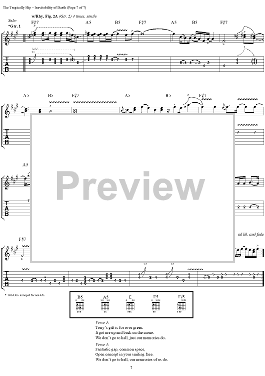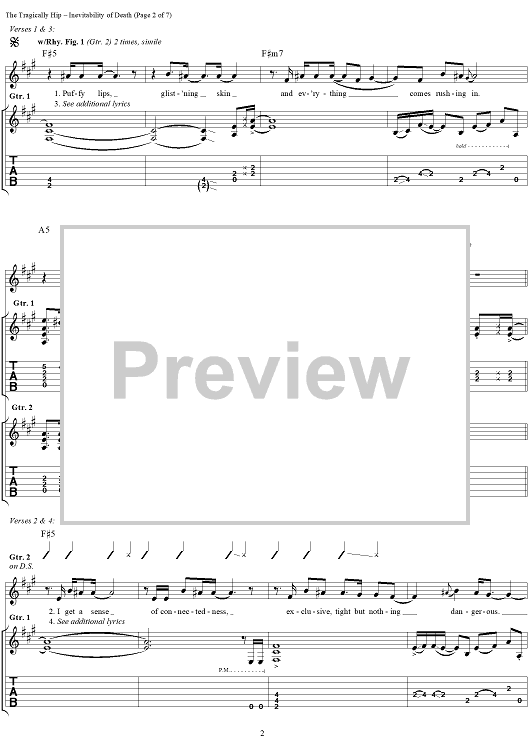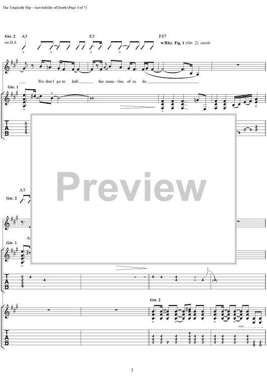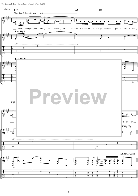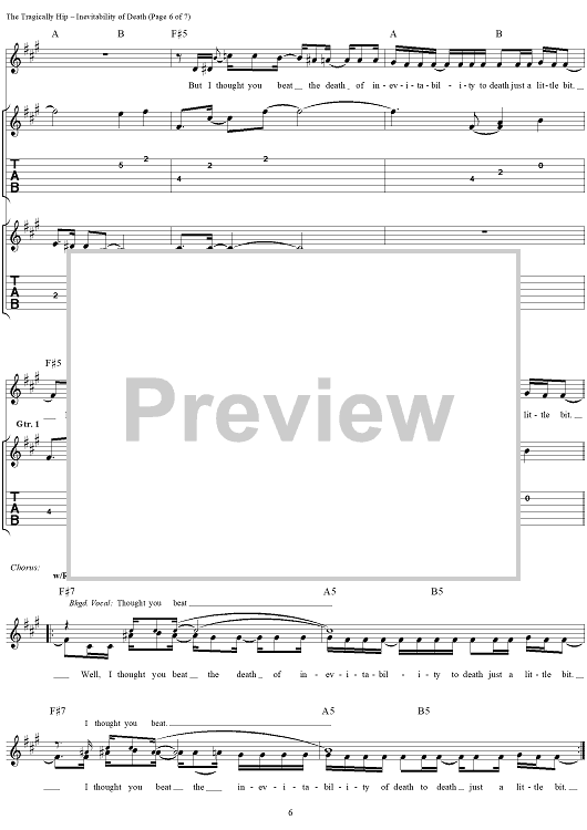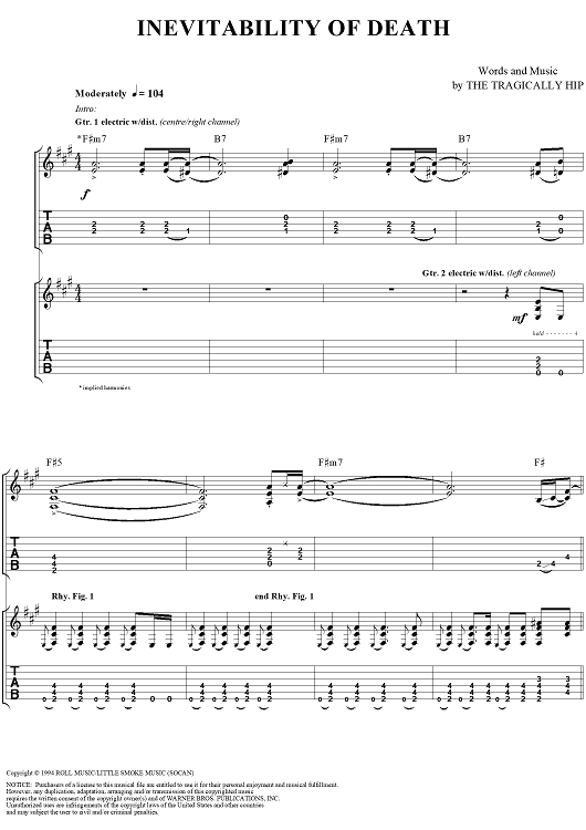 "Inevitability of Death" Sheet Music by The Tragically Hip