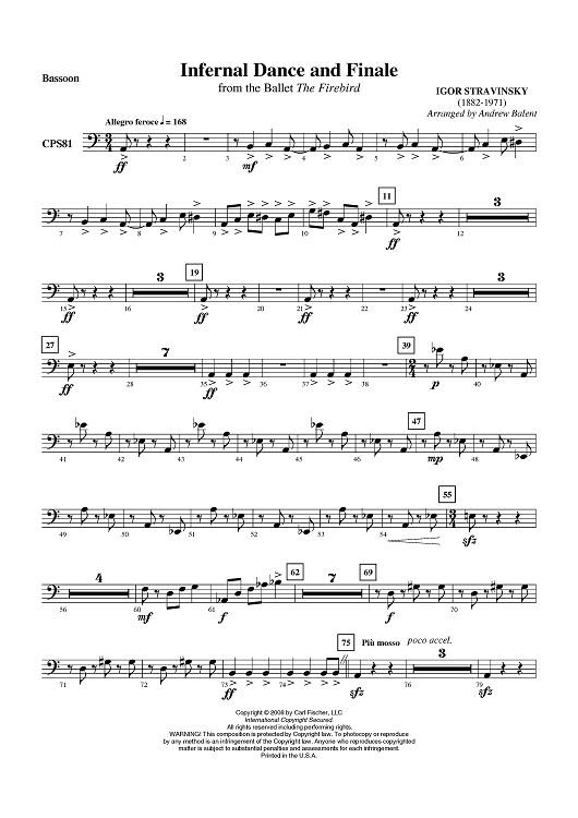 Digital Sheet Music for Infernal Dance and Finale - Bassoon by Igor Stravinsky, Andrew Balent scored for Concert Band; id:408815