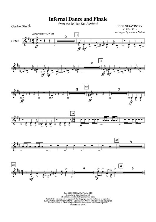 Digital Sheet Music for Infernal Dance and Finale - Clarinet 3 in B-flat by Igor Stravinsky, Andrew Balent scored for Concert Band; id:408812