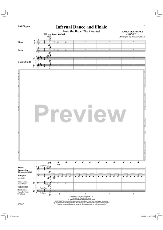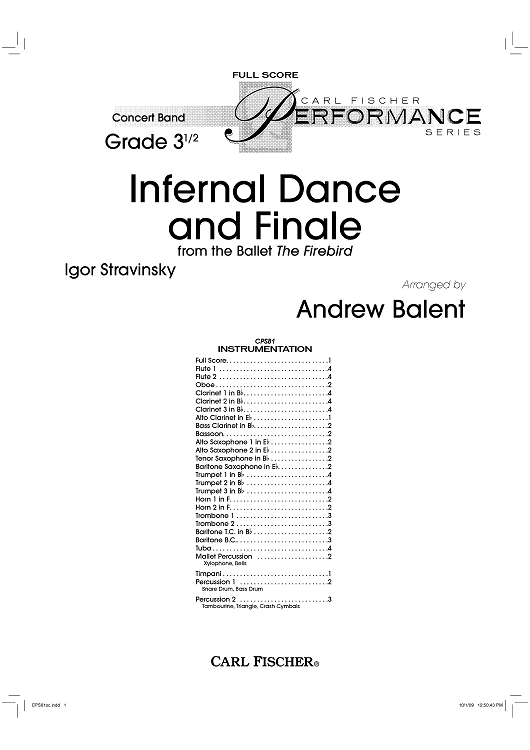 Digital Sheet Music for Infernal Dance and Finale - Score by Igor Stravinsky, Andrew Balent scored for Concert Band; id:408806