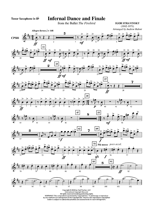 "Infernal Dance and Finale - Tenor Sax" Sheet Music by Igor Stravinsky