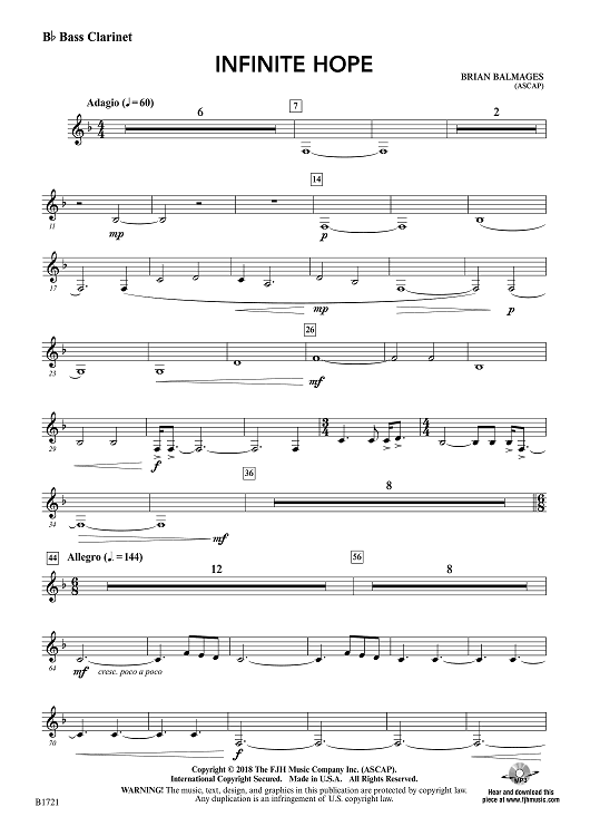 "Infinite Hope - Bb Bass Clarinet" Sheet Music by Brian Balmages