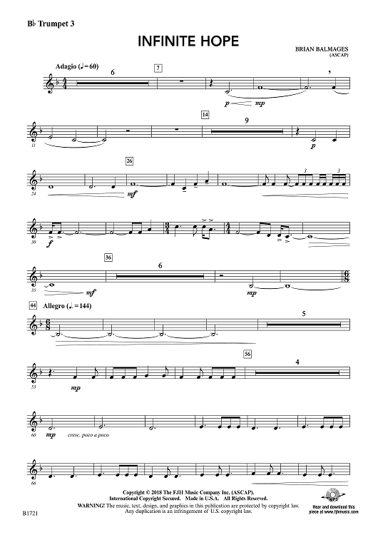"Infinite Hope - Bb Trumpet 3" Sheet Music by Brian Balmages