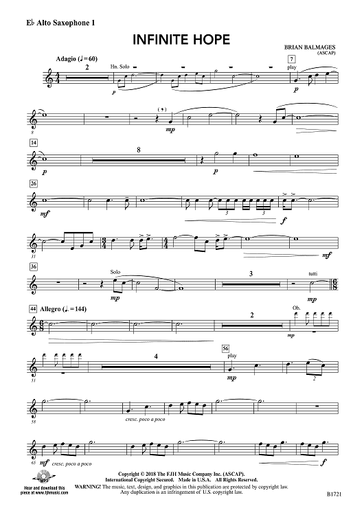 "Infinite Hope - Eb Alto Saxophone 1" Sheet Music by Brian Balmages