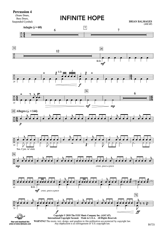 Digital Sheet Music for Infinite Hope - Percussion 4 by Brian Balmages scored for Concert Band; id:510396