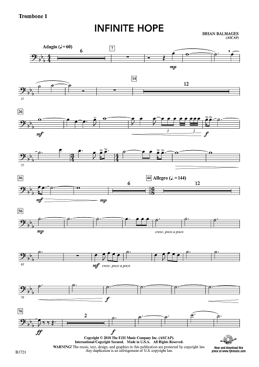 "Infinite Hope - Trombone 1" Sheet Music by Brian Balmages