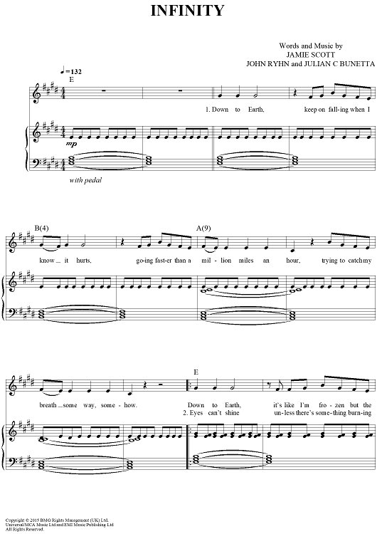 Digital Sheet Music for Infinity by One Direction, Jamie Scott, Julian Bunetta, John Ryhn scored for Piano/Vocal/Chords; id:454429