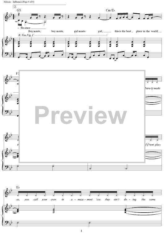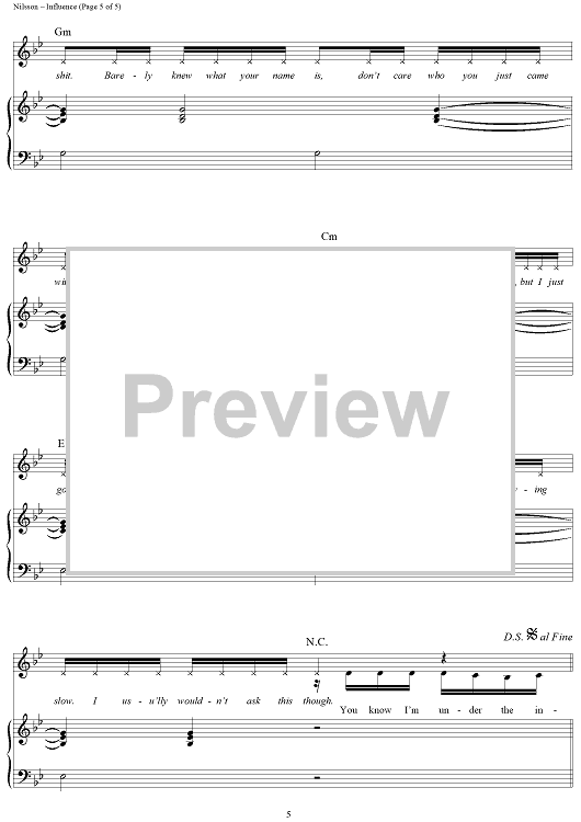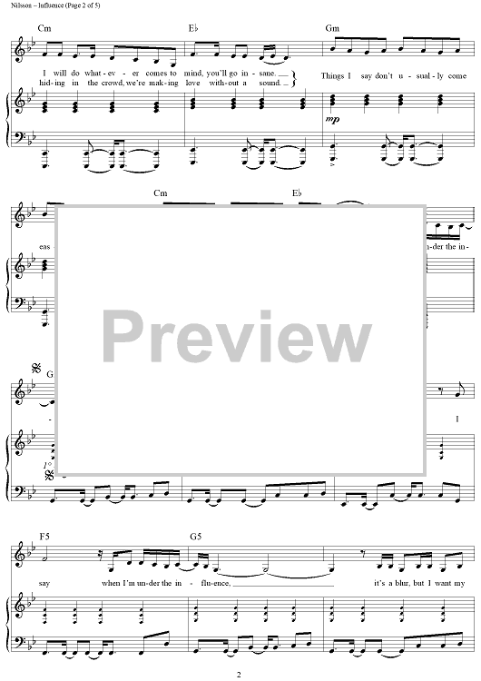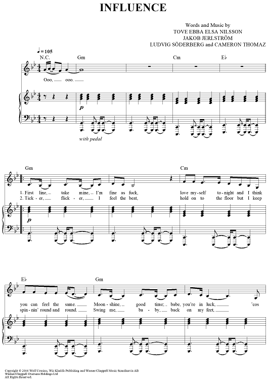 Digital Sheet Music for Influence by Wiz Khalifa, Tove Nilsson, Tove Lo, Jakob Jerlström, Ludvig Söderberg scored for Piano/Vocal/Chords; id:463234