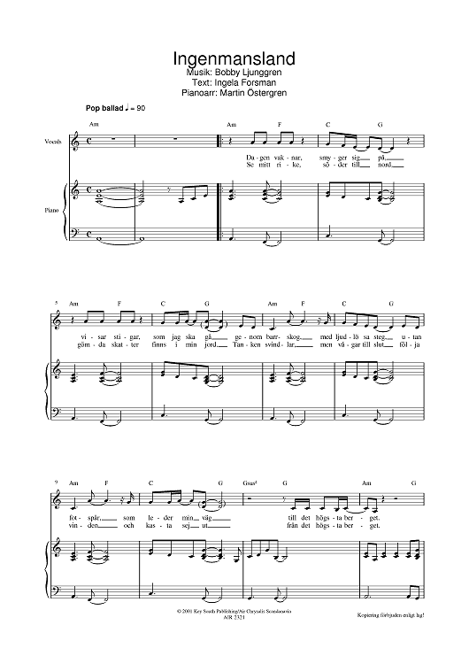 Digital Sheet Music for Ingenmansland by Jan Johansen scored for Piano/Vocal/Chords; id:377297