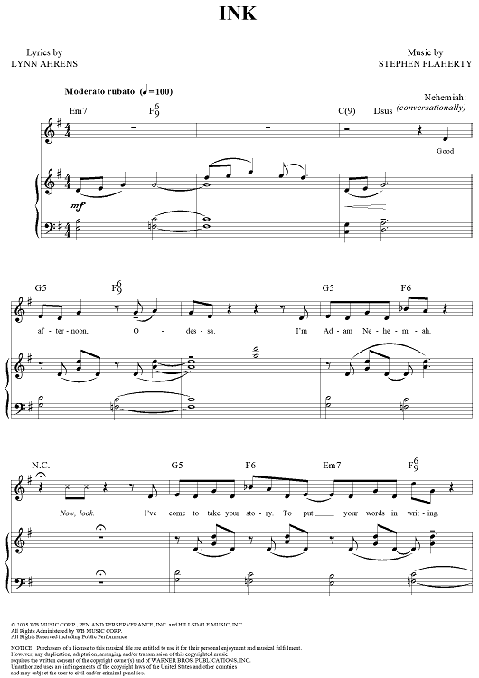 "Ink" Sheet Music by Stephen Flaherty