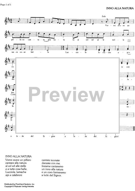 "Inno alla natura" Sheet Music by Oreste Rosso