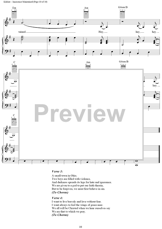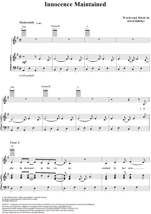Digital Sheet Music for Innocence Maintained by Jewel scored for Piano/Vocal/Chords; id:110939