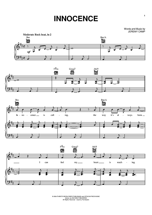 Digital Sheet Music for Innocence by Jeremy Camp scored for Piano/Vocal/Chords; id:381874
