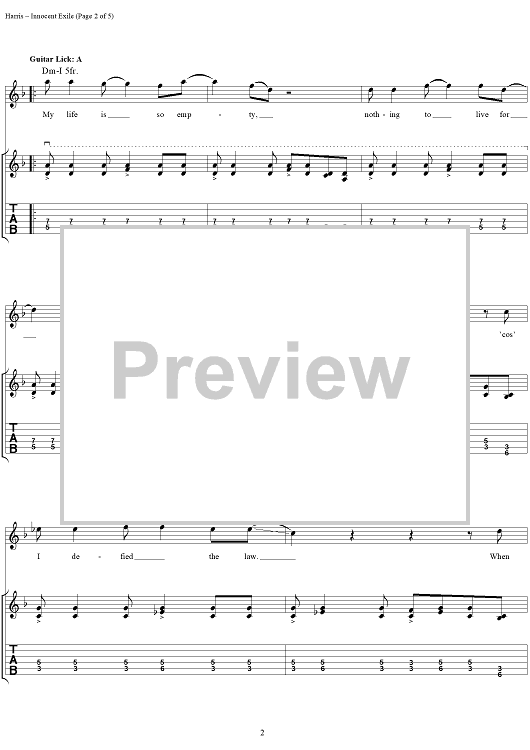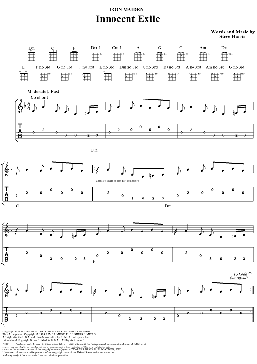 Digital Sheet Music for Innocent Exile by Steve Harris, Iron Maiden scored for Guitar Tab/Vocal; id:111916