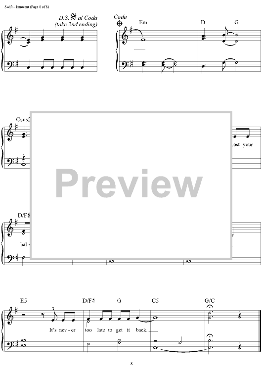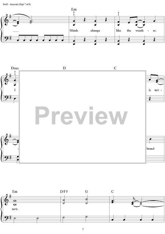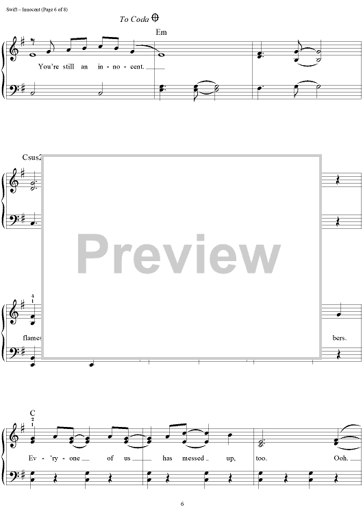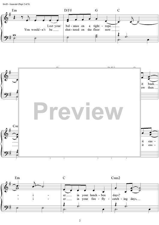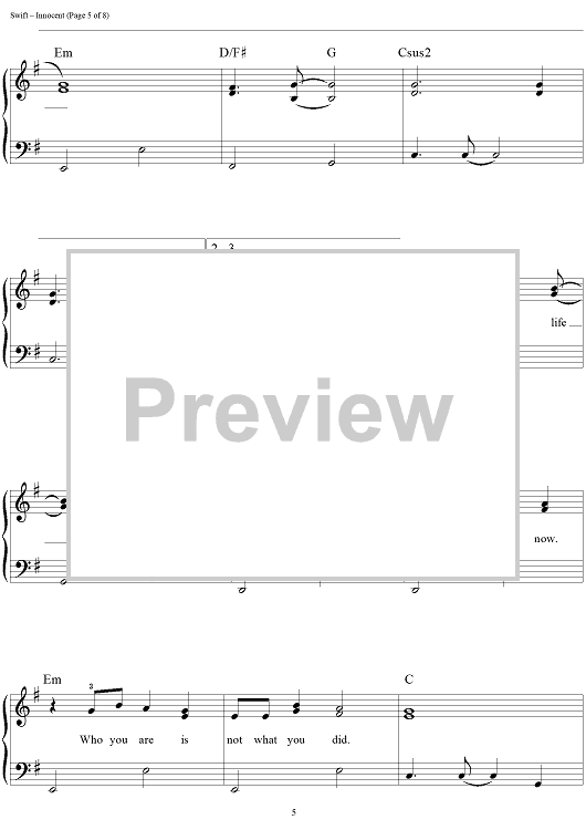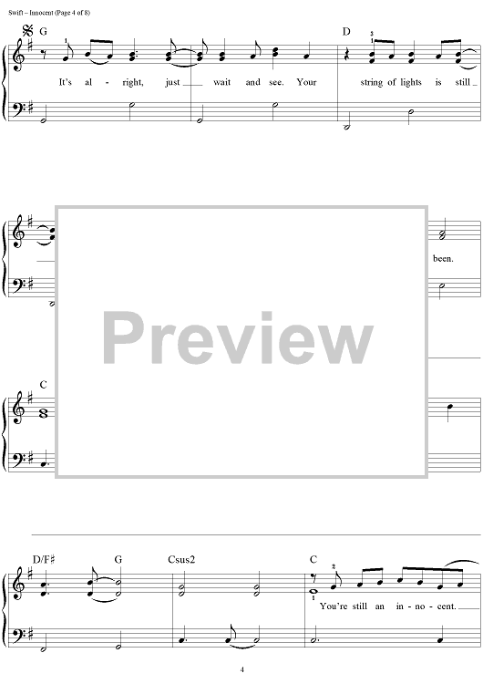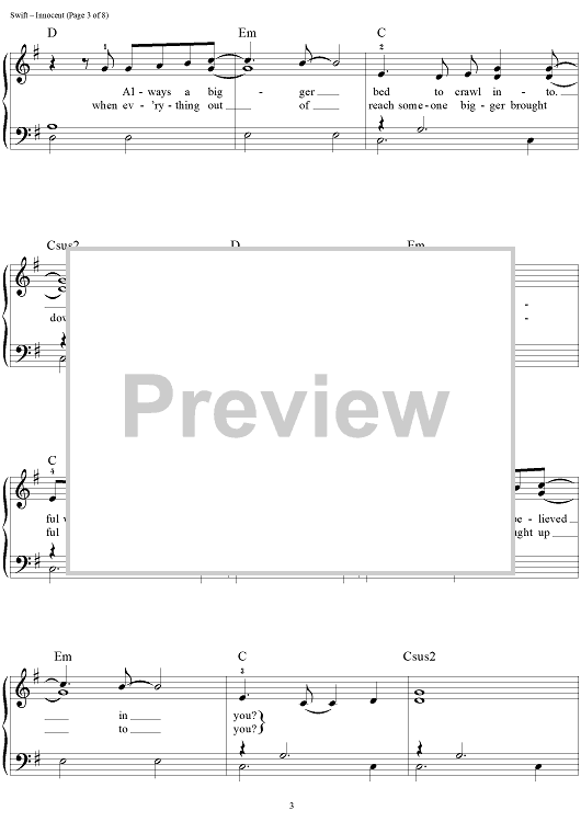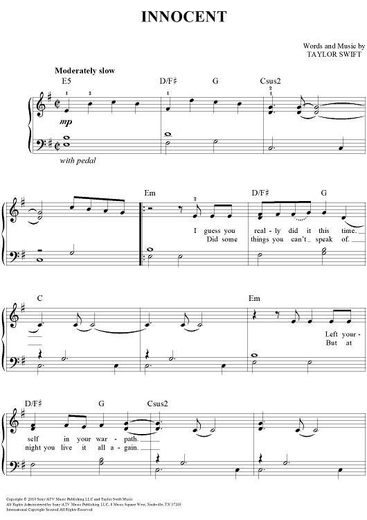 Digital Sheet Music for Innocent by Taylor Swift scored for Easy Piano/Vocal/Chords; id:460136