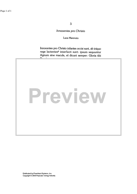 "Innocentes pro Christo - Lyrics" Sheet Music by Luca Marenzio