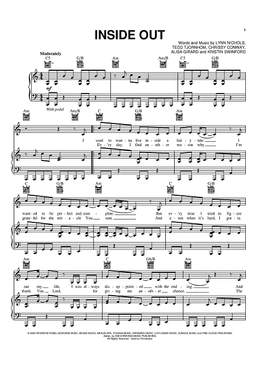 Digital Sheet Music for Inside Out by Tedd T, Chrissy Conway, Lynn Nichols, ZOEgirl scored for Piano/Vocal/Chords; id:373156