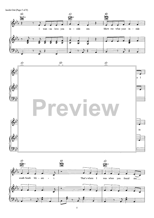 Digital Sheet Music for Inside Out by Brittany Hazzard, Camila Cabello, Adam Feeney, Kaan Gunesberk scored for Piano/Vocal/Chords; id:466316