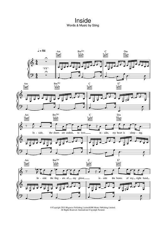 Digital Sheet Music for Inside by Sting scored for Piano/Vocal/Chords; id:378173