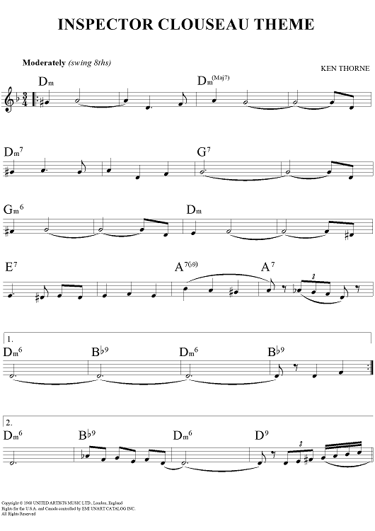 Digital Sheet Music for Inspector Clouseau Theme by Ken Thorne scored for Lead Sheet; id:109841