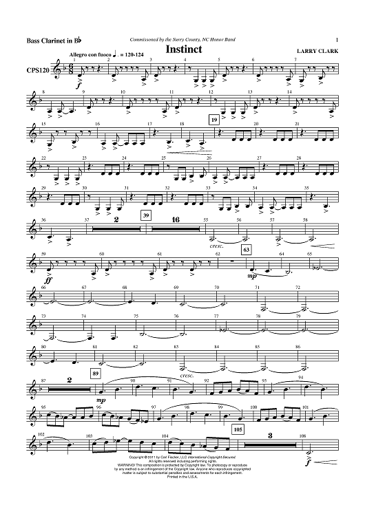 Digital Sheet Music for Instinct - Bass Clarinet in Bb by Larry Clark scored for Concert Band; id:420302