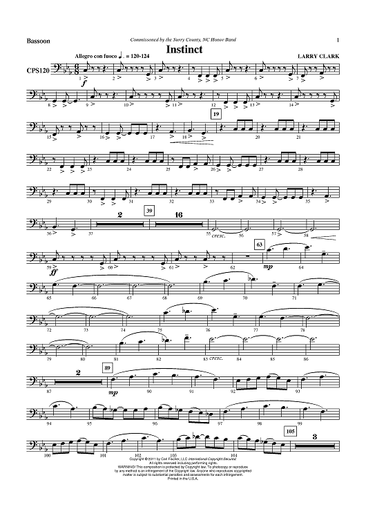 Digital Sheet Music for Instinct - Bassoon by Larry Clark scored for Concert Band; id:420303