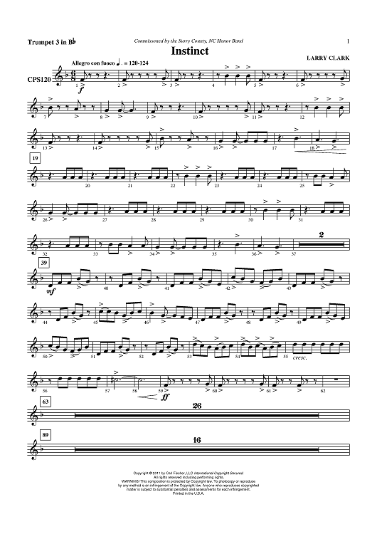 Digital Sheet Music for Instinct - Trumpet 3 in Bb by Larry Clark scored for Concert Band; id:420310