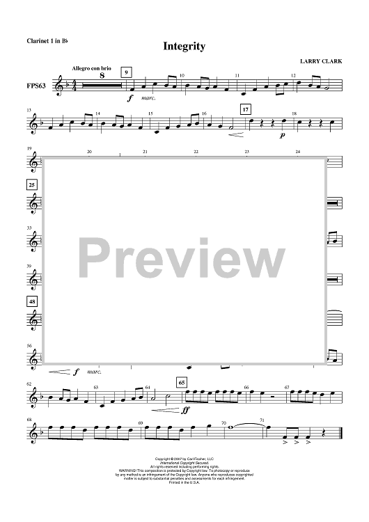 Digital Sheet Music for Integrity - Clarinet 1 in B-flat by Larry Clark scored for Concert Band; id:407484