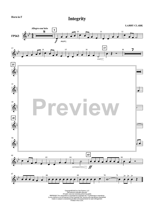 "Integrity - Horn in F" Sheet Music by Larry Clark
