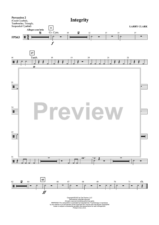 Digital Sheet Music for Integrity - Percussion 2 by Larry Clark scored for Concert Band; id:407499