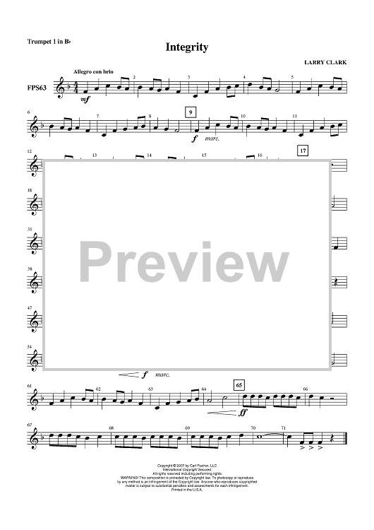 "Integrity - Trumpet 1 in B-flat" Sheet Music by Larry Clark