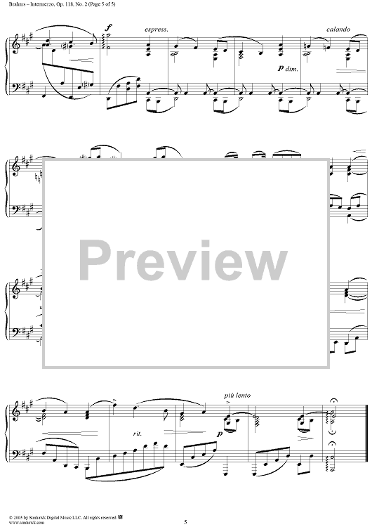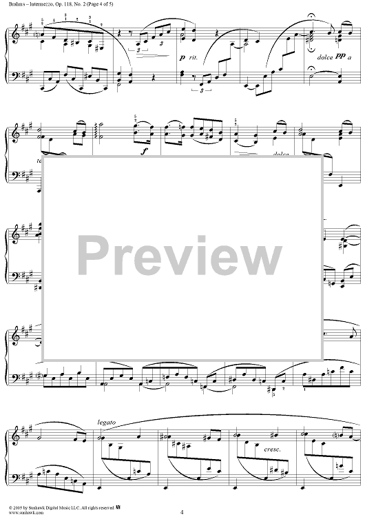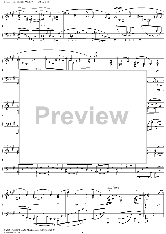 Digital Sheet Music for Intermezzo, No. 2 from "Six Pieces". Op. 118 by , Johannes Brahms scored for Piano Solo; id:315485