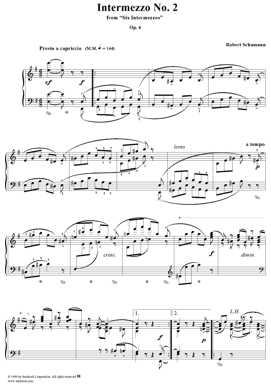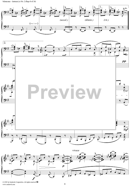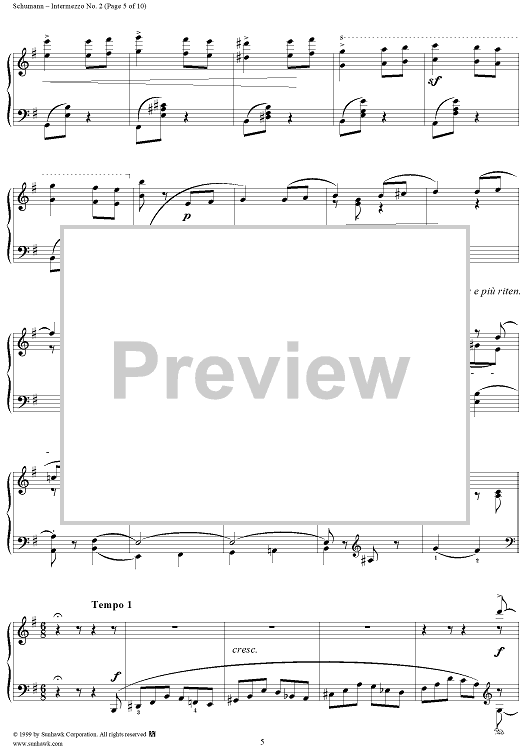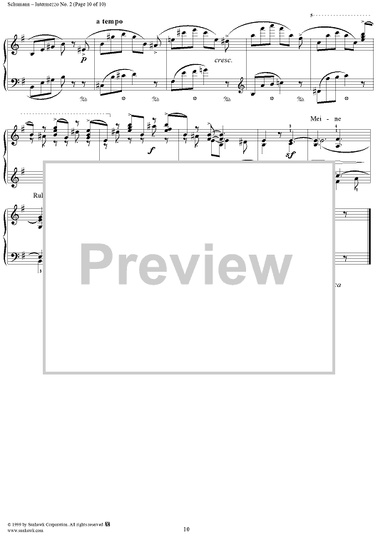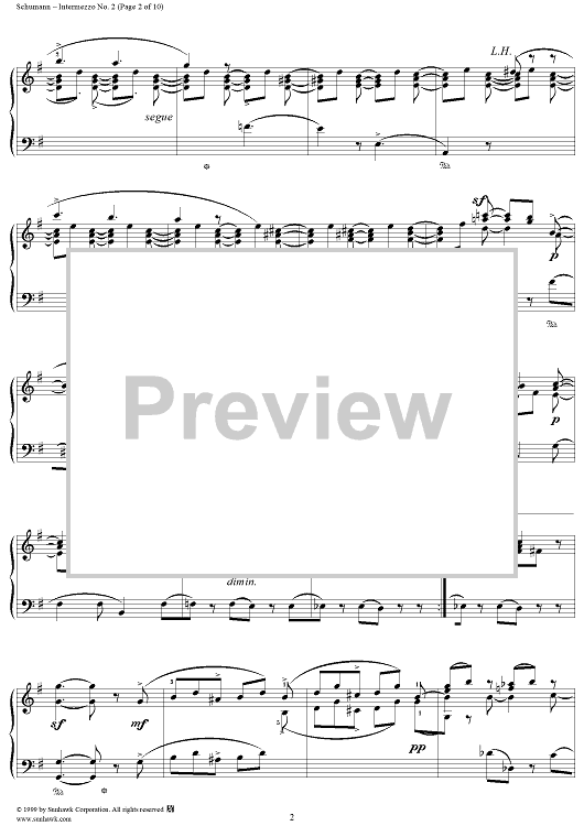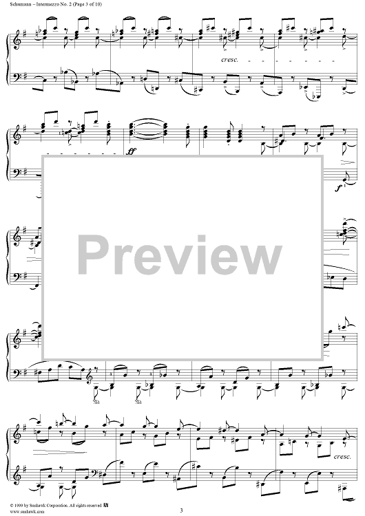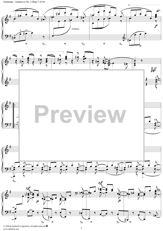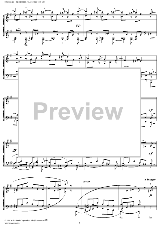 Digital Sheet Music for Intermezzo No. 2 by Robert Schumann scored for Piano Solo; id:258384