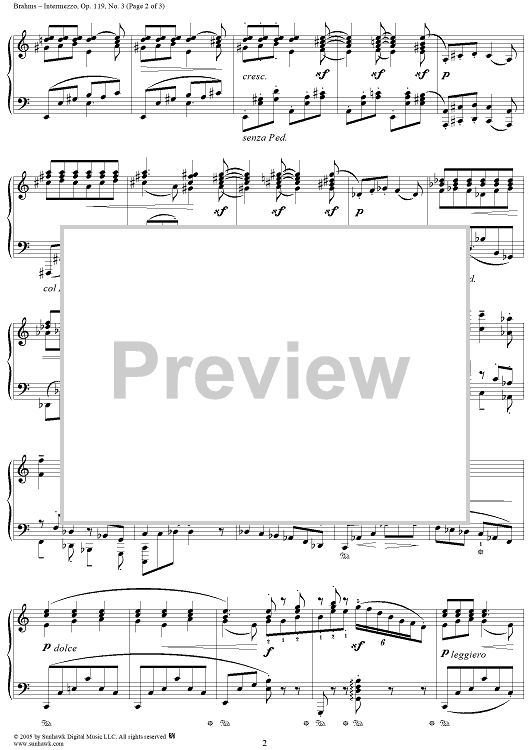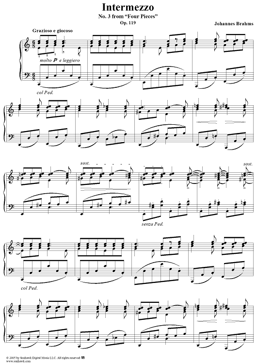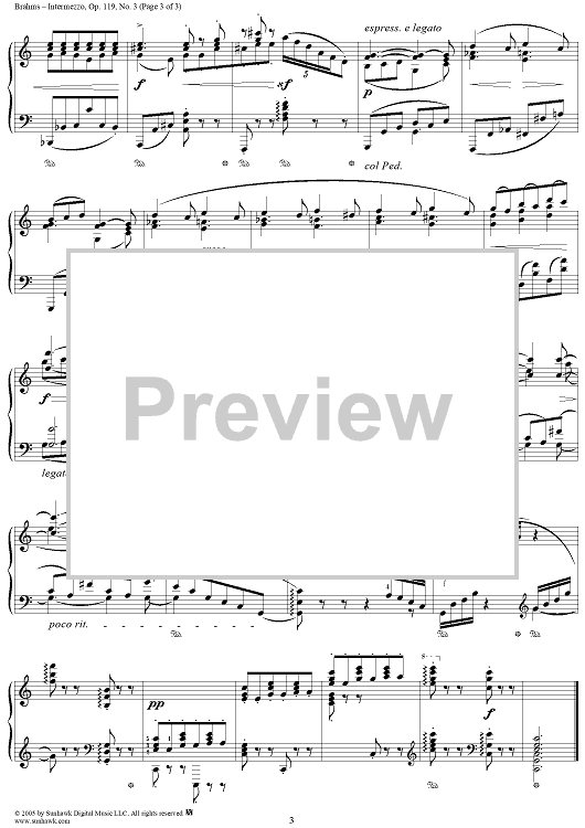 Digital Sheet Music for Intermezzo, No. 3 from "Four Pieces". Op. 119 by , Johannes Brahms scored for Piano Solo; id:315489