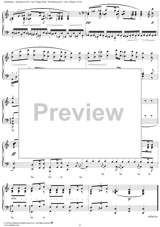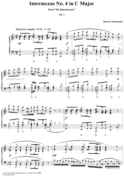 Digital Sheet Music for Intermezzo No. 4 by Robert Schumann scored for Piano Solo; id:307799