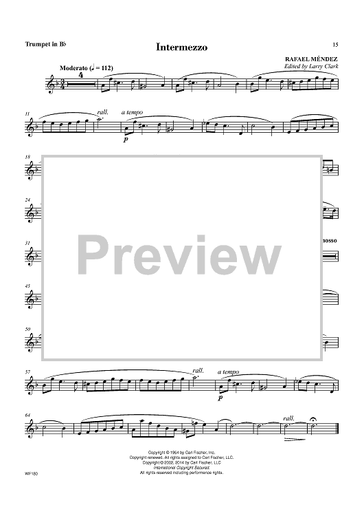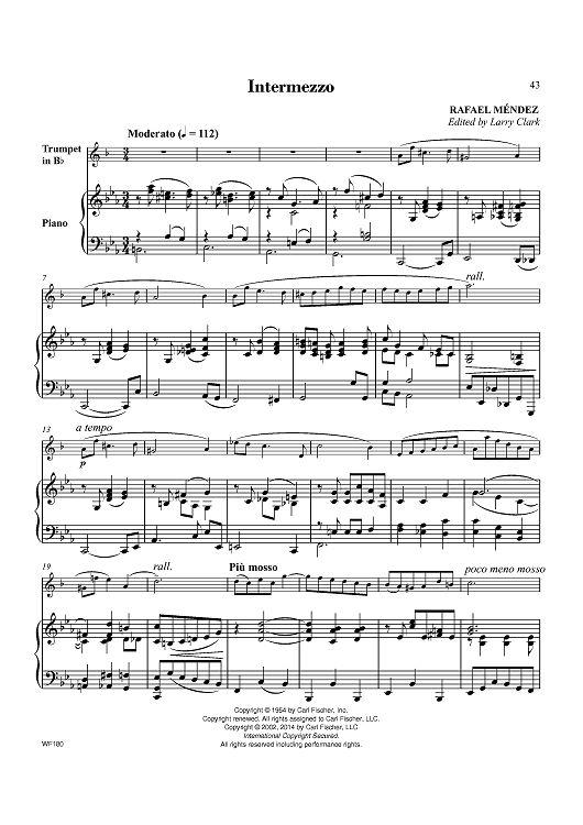 Digital Sheet Music for Intermezzo by Rafael Méndez scored for Bb Trumpet/Piano; id:451719