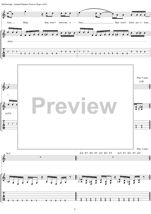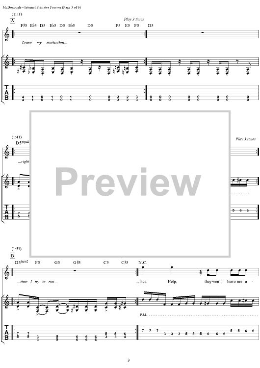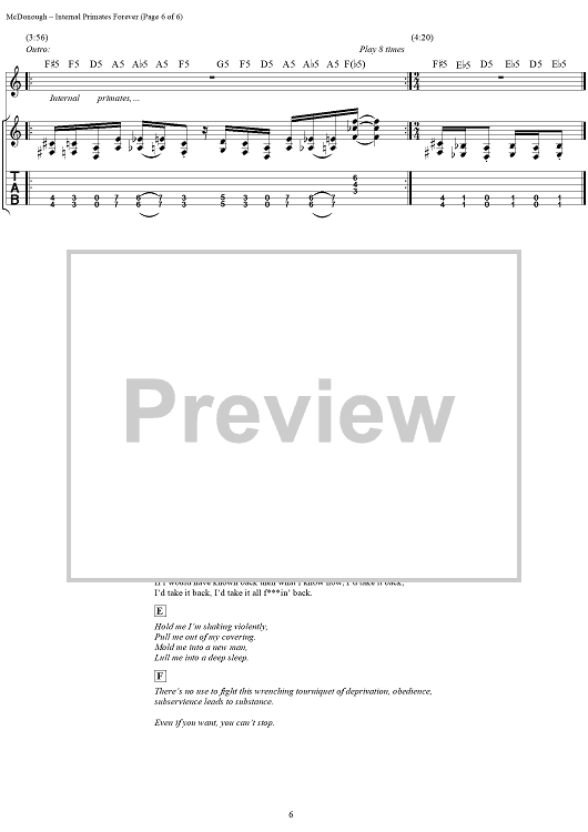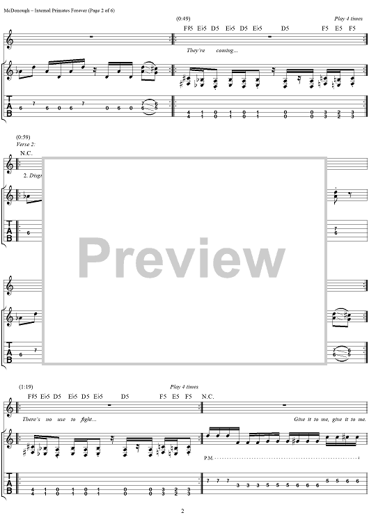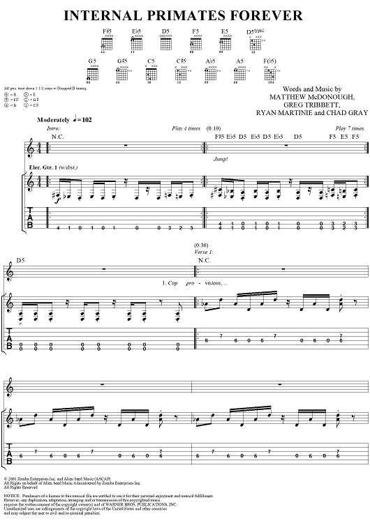 Digital Sheet Music for Internal Primates Forever by Matthew McDonough, Gurrg, Ry-Know, Chad Gray, Mudvayne scored for Guitar Tab/Vocal; id:287902