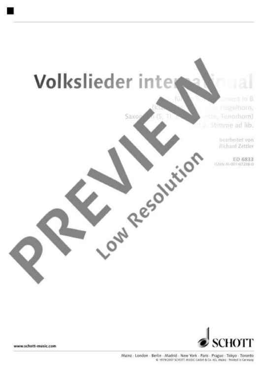 Digital Sheet Music for International Folksongs by Richard Zettler scored for Wind Instrument In Bb (clarinet, Soprano Saxophone, Tenor Saxophone, Bass Clarinet, Flugelhorn, Trumpet, Tenor Horn; Schweizer N; id:473739