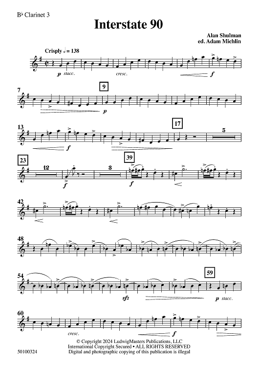 "Interstate 90 - Bb Clarinet 3" Sheet Music by Alan Shulman