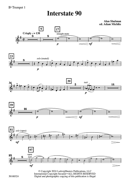 "Interstate 90 - Bb Trumpet 1" Sheet Music by Alan Shulman
