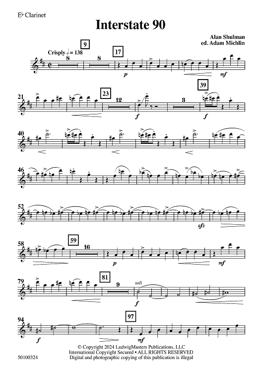 "Interstate 90 - Eb Clarinet" Sheet Music by Alan Shulman