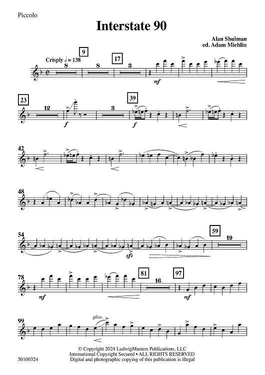 "Interstate 90 - Piccolo" Sheet Music by Alan Shulman