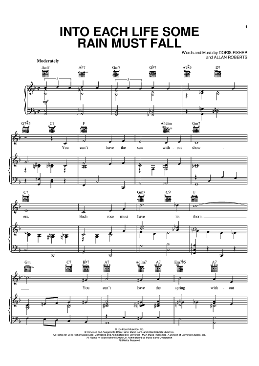 Digital Sheet Music for Into Each Life Some Rain Must Fall by Ella Fitzgerald, The Ink Spots, Allan Roberts, Doris Fisher scored for Piano/Vocal/Chords; id:381528