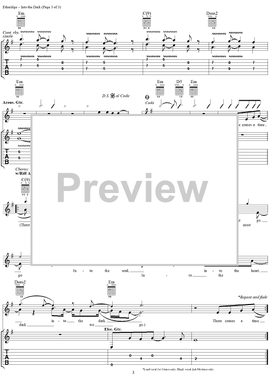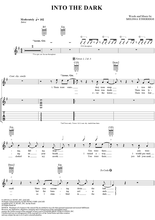 "Into the Dark" Sheet Music by Melissa Etheridge