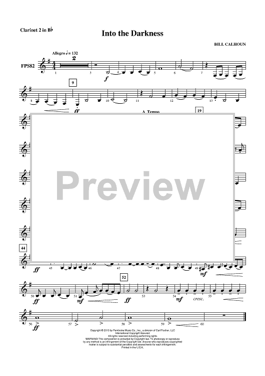 "Into the Darkness - Clarinet 2 in B-flat" Sheet Music by Bill Calhoun