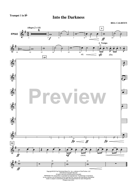 "Into the Darkness - Trumpet 1 in Bb" Sheet Music by Bill Calhoun